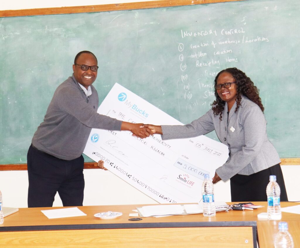 Smile Life Company has donated a cheque of Mk5 million to the Catholic University of Malawi towards purchasing of new